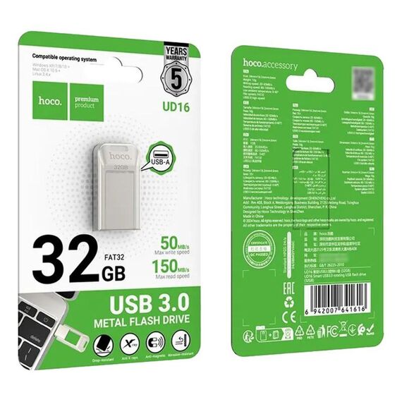 USB флеш накопичувач Hoco UD16 32GB USB 3.0 металевий silver