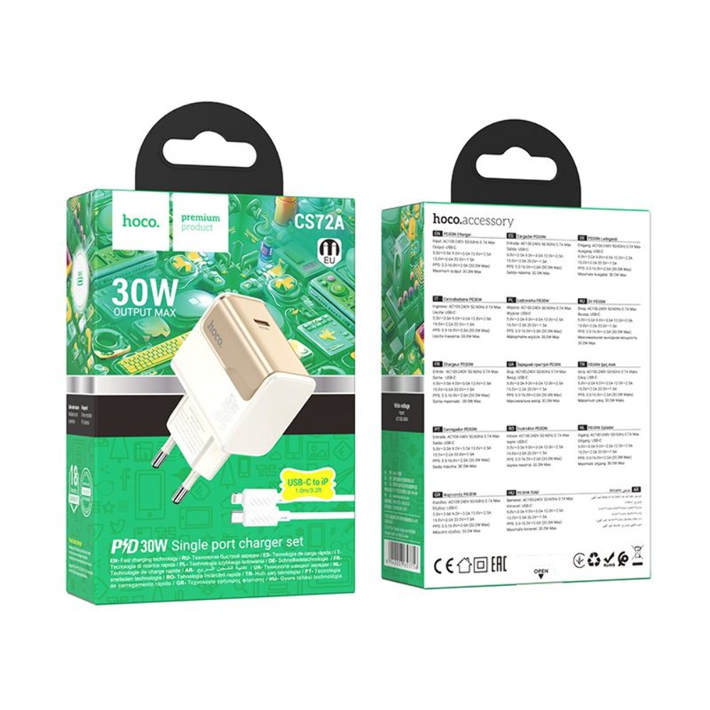 Мережевий зарядний пристрій Hoco CS72A Type-C PD 30W white + кабель Type-C to Lightning