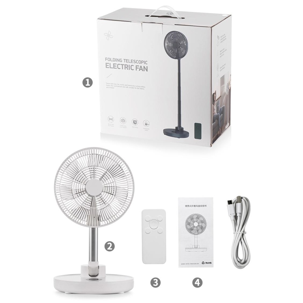 Настільний/підлоговий бездротовий вентилятор GXQC D1201 white - Потужний акумуляторний вентилятор на телескопічній стійці з безщітковим двигуном. Оснащений 18650 літієвою батареєю ємністю – 12000 mAh, він забезпечить вам безперервний потік свіжого повітря до 12 годин. За рахунок можливості живлення від будь-якого USB порту 5V його можна підключити до мережного адаптера, повербанка або ноутбука за допомогою кабелю, що йде в комплекті.