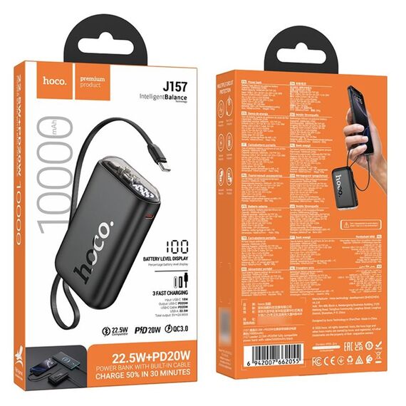 Power bank Hoco J157 10000mAh 22.5W + PD 20W black + кабель Type-C