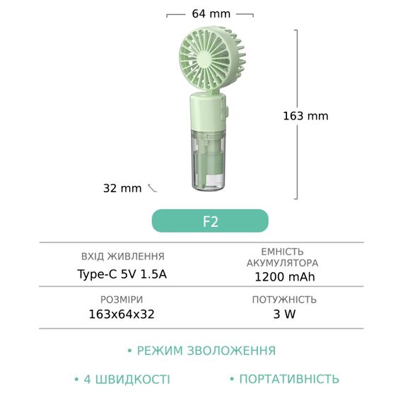 Ручний бездротовий вентилятор F2 з функцією зволоження (зелений)