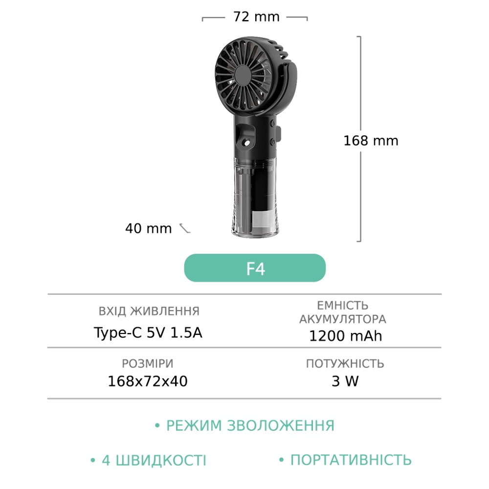 Ручной беспроводной вентилятор F4 с функцией увлажнения black