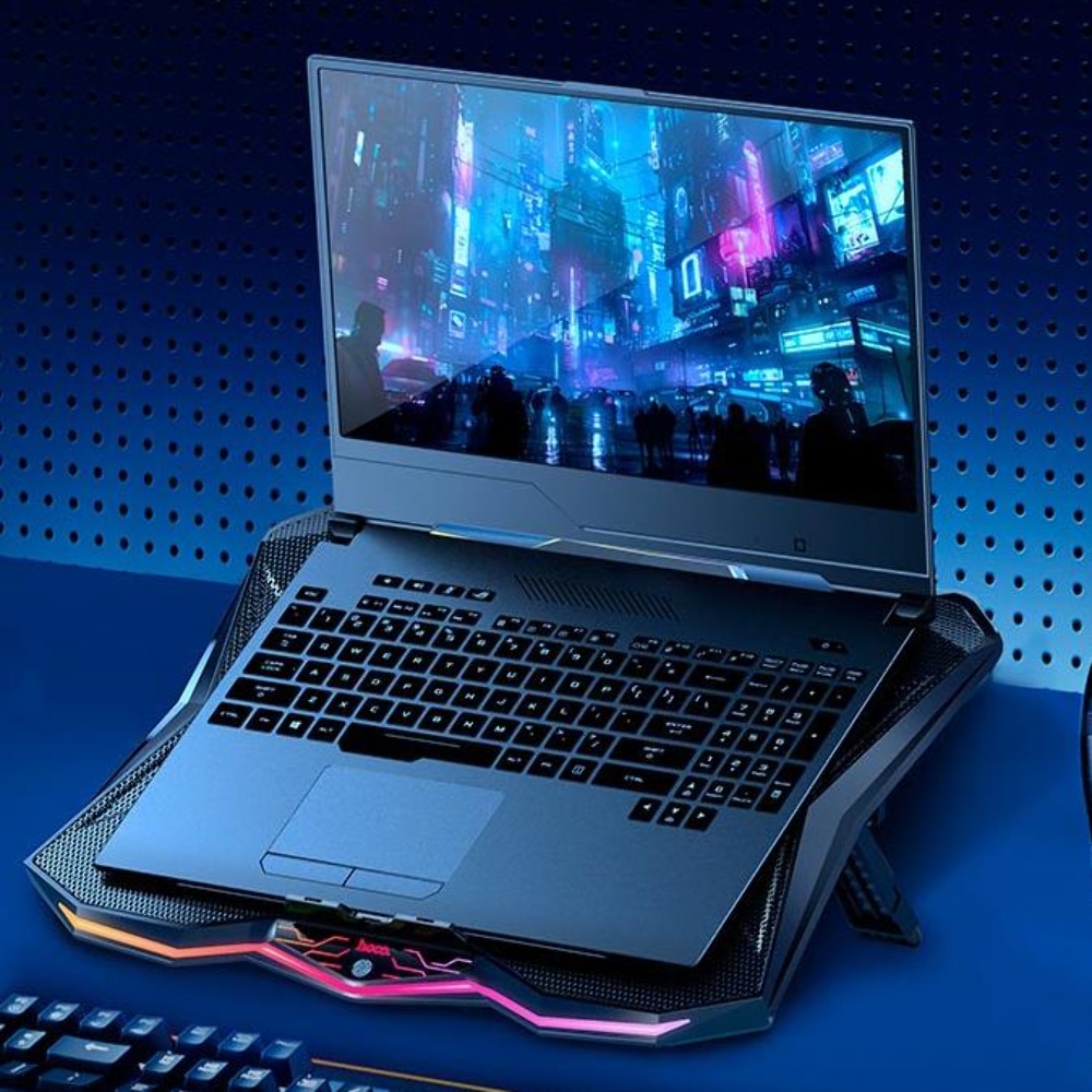 Подставка для ноутбука Hoco DH26 с вентиляторами и LED подсветкой black