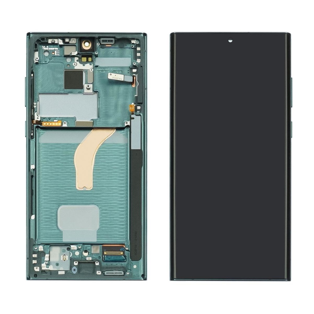 Купити дисплей для Samsung S908B Galaxy S22 Ultra з чорним тачскрином та зеленою корпусною рамкою GH82-27488D Original в інтернет-магазині Yuca