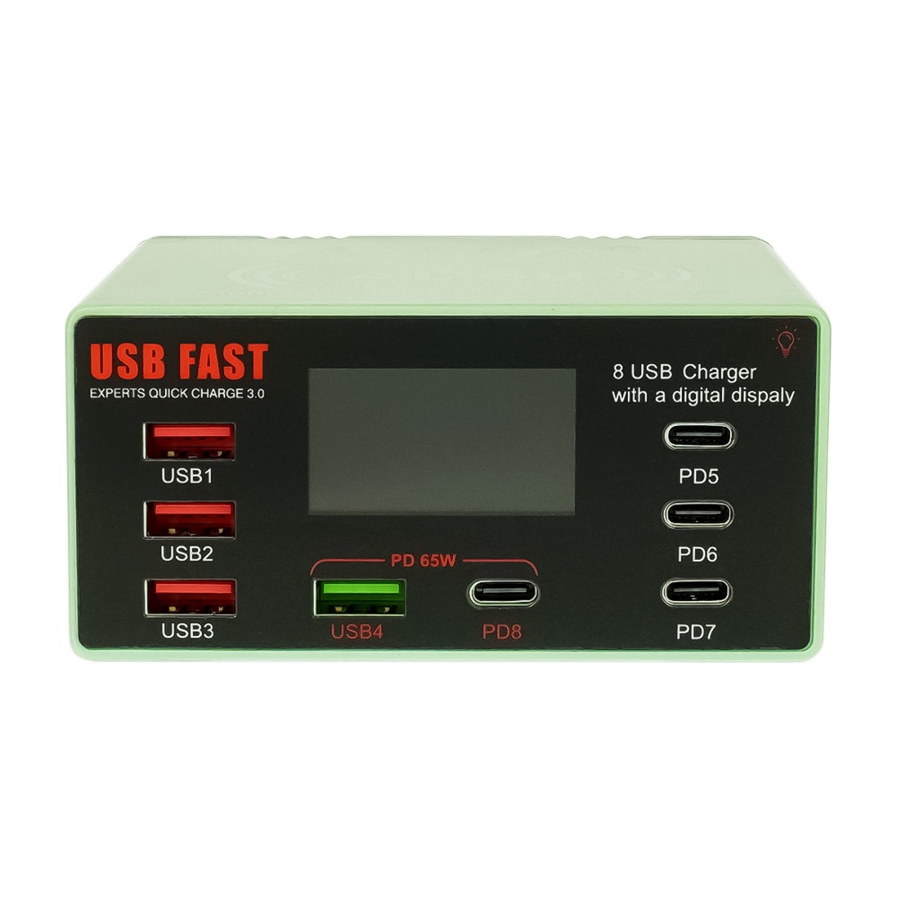 Зарядная станция с индикацией параметров зарядки Aida AD80 110W (3 USB 2.4А/ 1 USB QC 3A/ 3 Type-C PD 20W/ 1 Type-C PD 65W/ Wireless fast charging 15W)