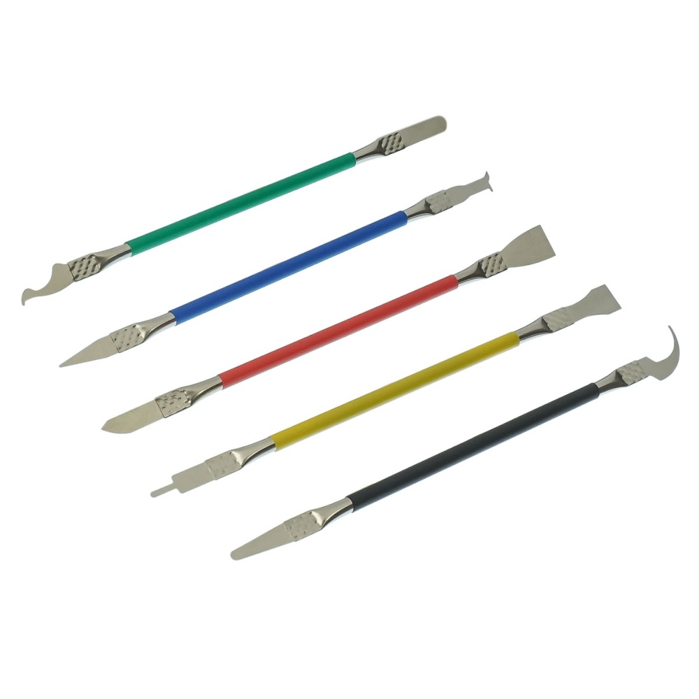 Набор для ремонта печатных плат и микросхем Aida TE-018 (5 двусторонних, металлических, тонких лопаток)