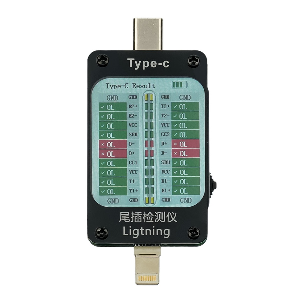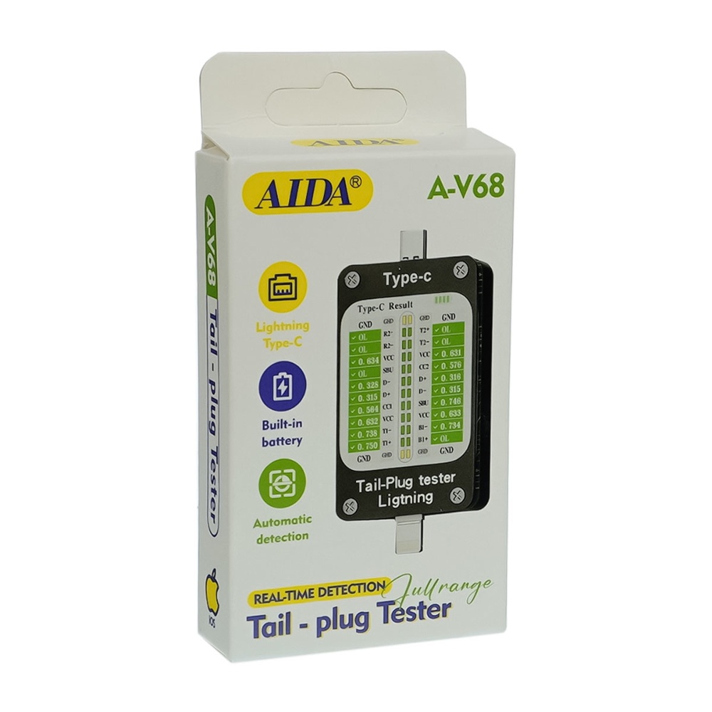 Тестер разъёмов питания Aida A-V68, Type C/ Lightning с ЖК дисплеем и встроенным АКБ