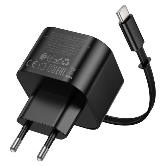 Мережевий зарядний пристрій Hoco C153A PD black + кабель Type-C