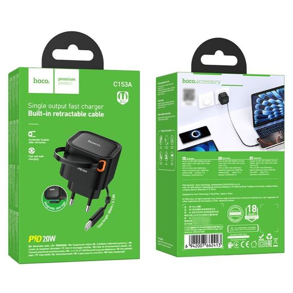 Мережевий зарядний пристрій Hoco C153A PD black - це надійний аксесуар для швидкої зарядки ваших пристроїв. Модель C153A підтримує швидку зарядку Power Delivery і Quick Charge, забезпечуючи потужність 20W. Це ідеальний вибір для користувачів, яким потрібна ефективність і швидкість.