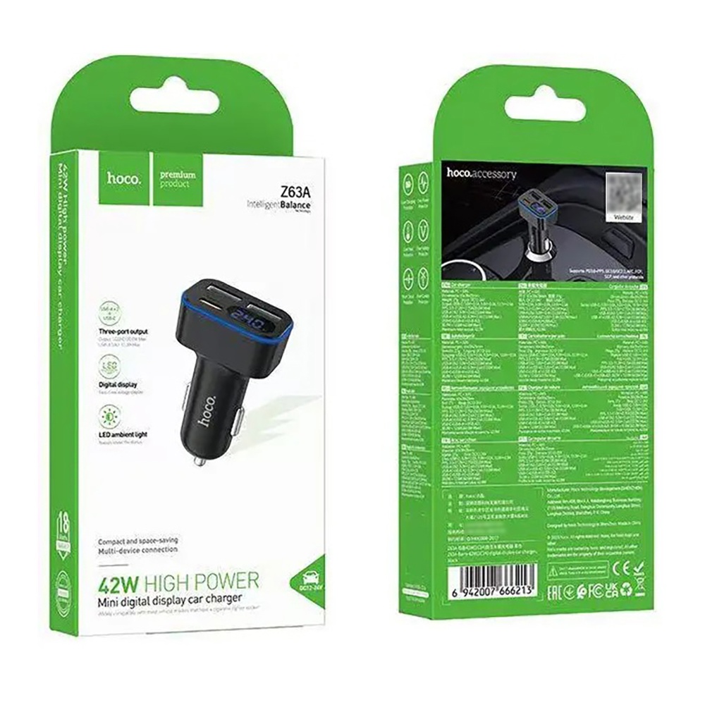 Автомобільний зарядний пристрій Hoco Z63A 2USB/ Type-C PD QC 42W з дисплеєм black