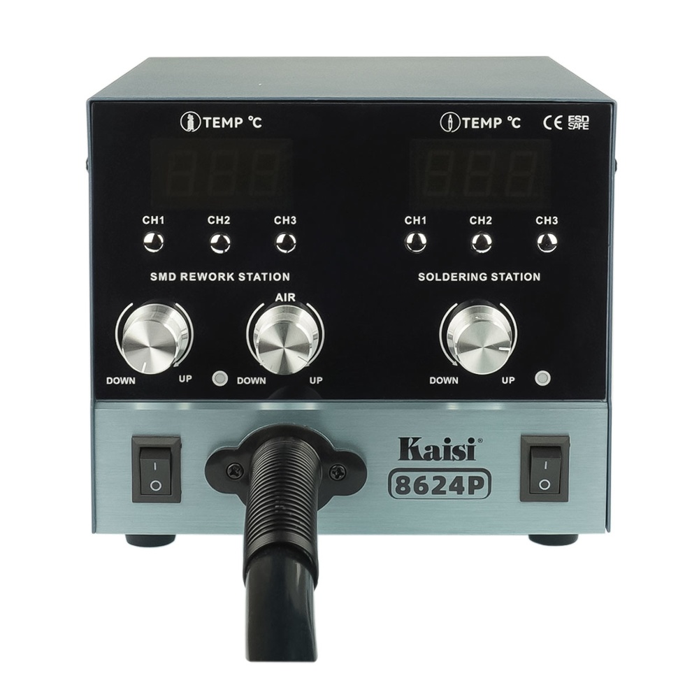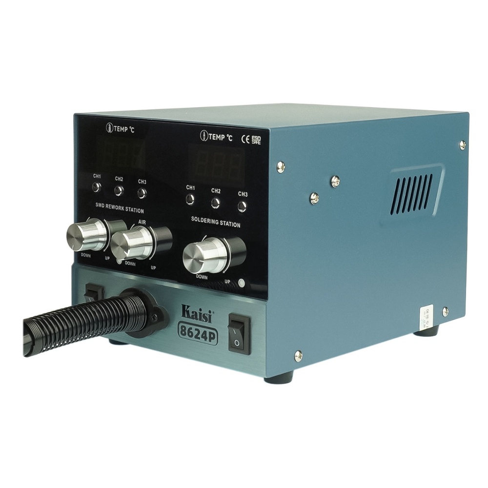 Паяльная станция прецизионная Kaisi 8624P-210, фен 100C - 450C, паяльник стандарта JBC 210 200C - 500C, 6 каналов памяти, 800W