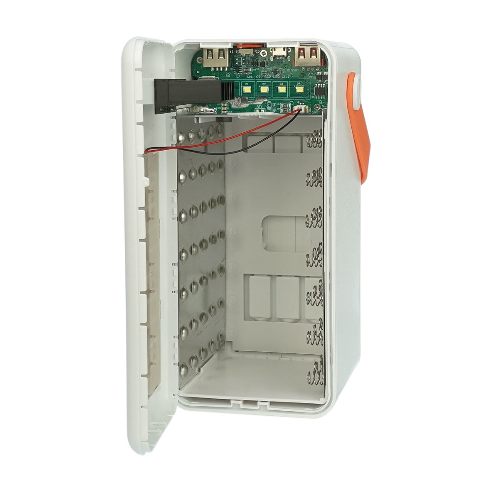 Корпус Multi-powerbank S35, под элементы 18650 до 35 шт, 22.5W, с фонарем, белый