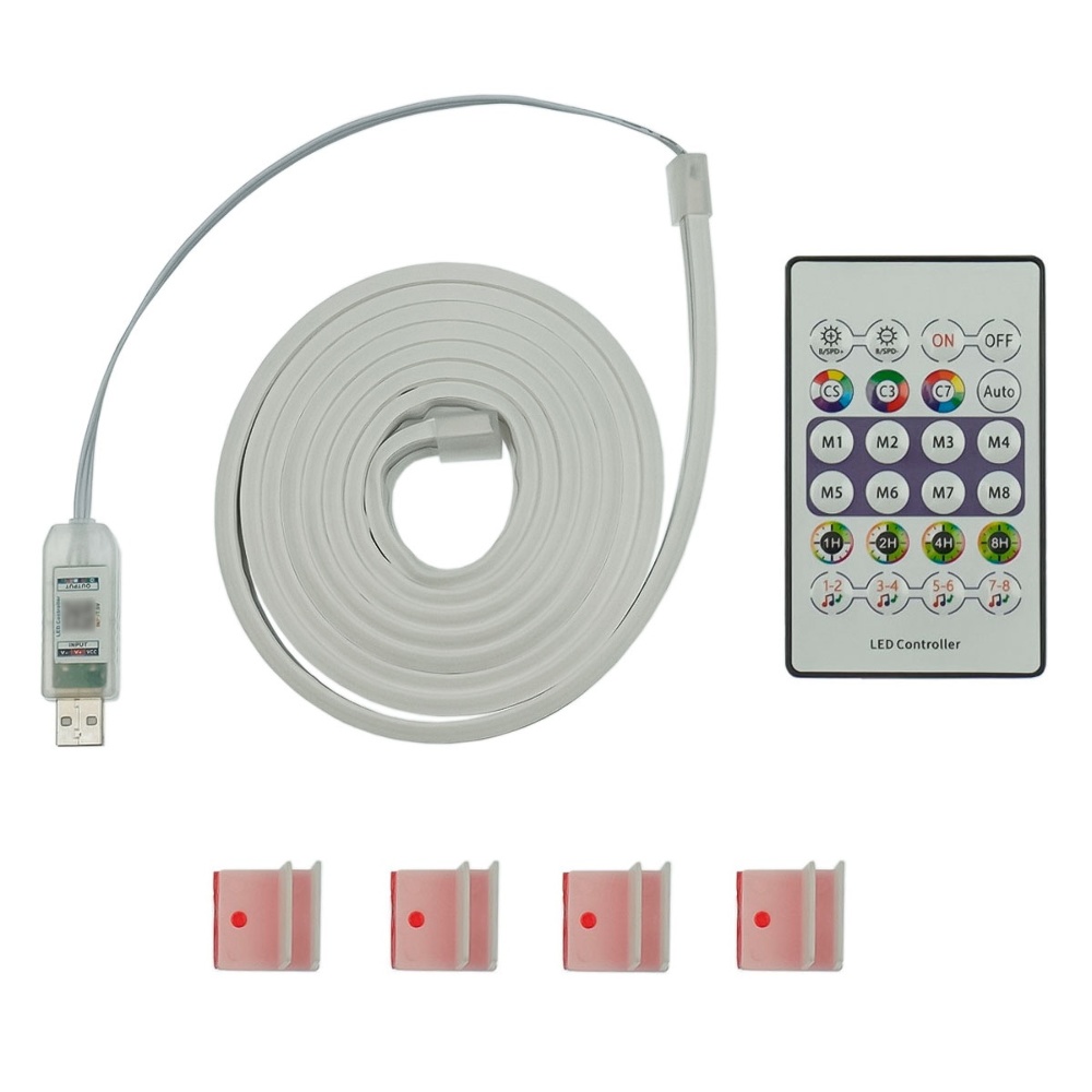 LED лента неоновая USB RGB 5V, IP 65, 2м, с Bluetooth и пультом (черный), датчиком звука