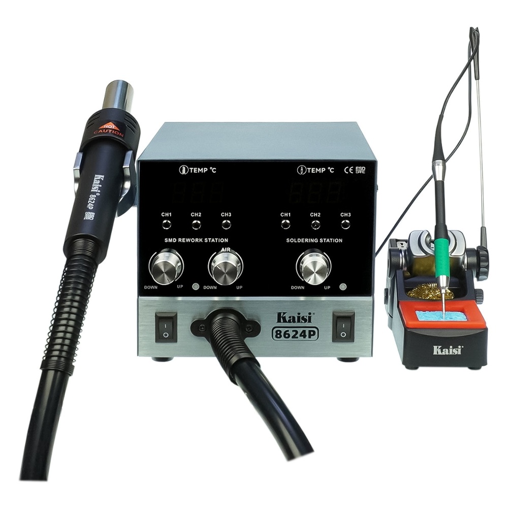 Паяльная станция прецизионная Kaisi 8624P-115, фен 100C - 450C, паяльник стандарта JBC 115 200C - 500C, 6 каналов памяти, 800W