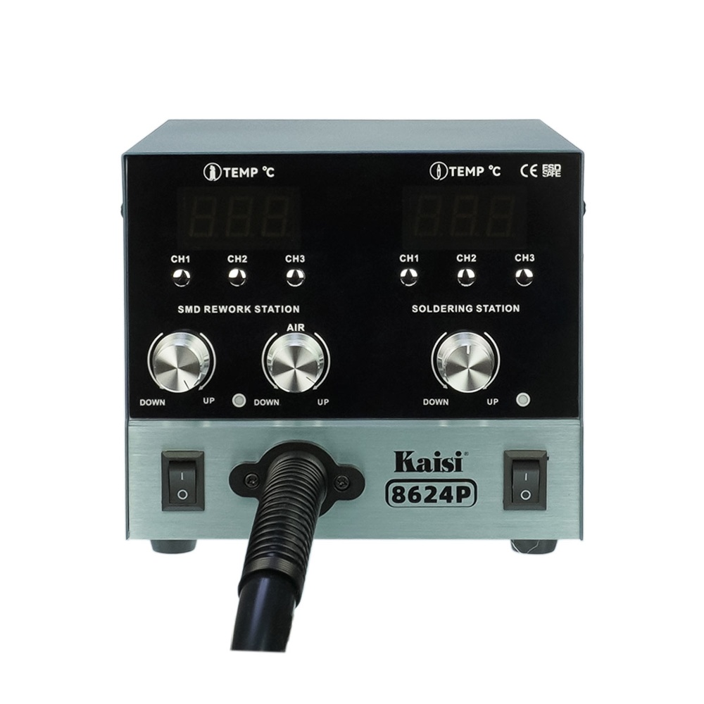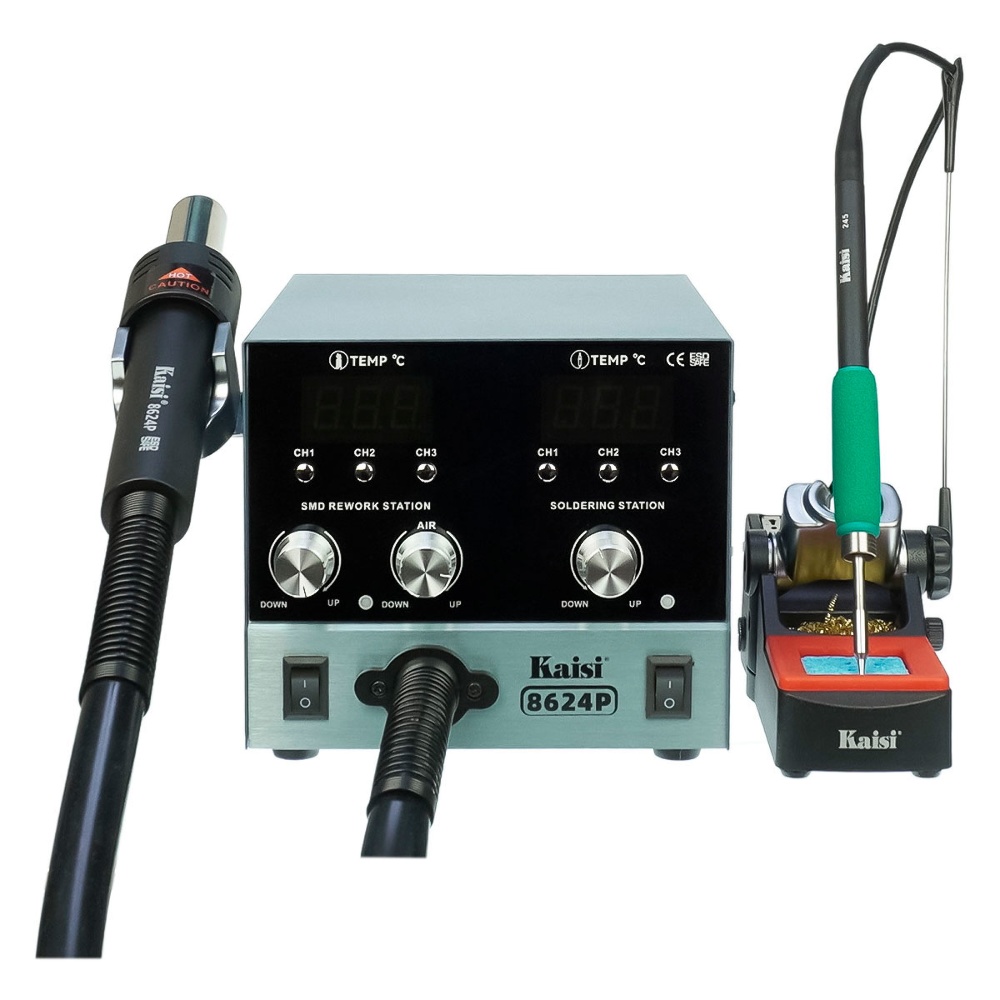 Паяльная станция прецизионная Kaisi 8624P-245, фен 100C - 450C, паяльник стандарта JBC 245 200C - 500C, 6 каналов памяти, 800W