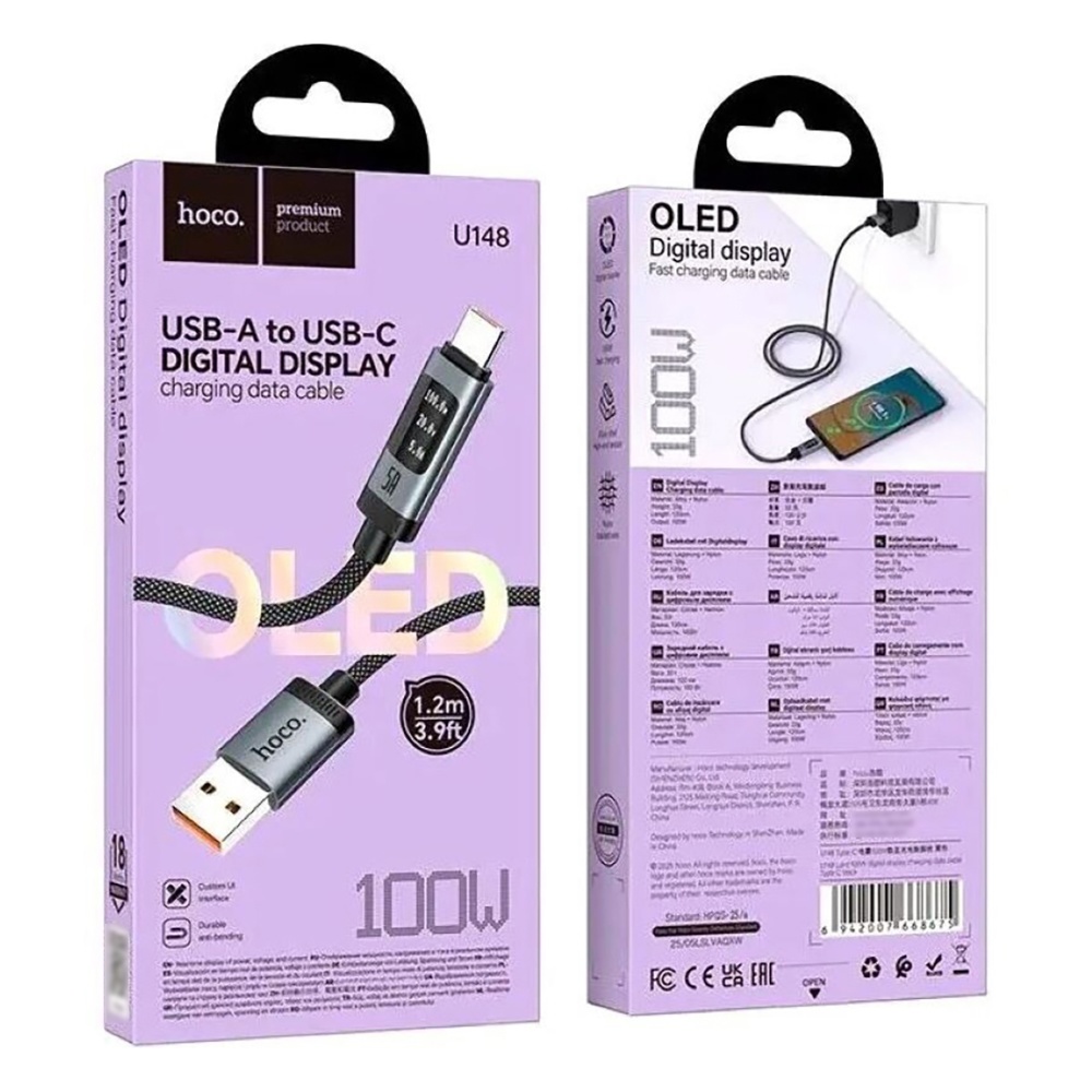 Кабель Hoco U148 USB to Type-C 100W с дисплеем black